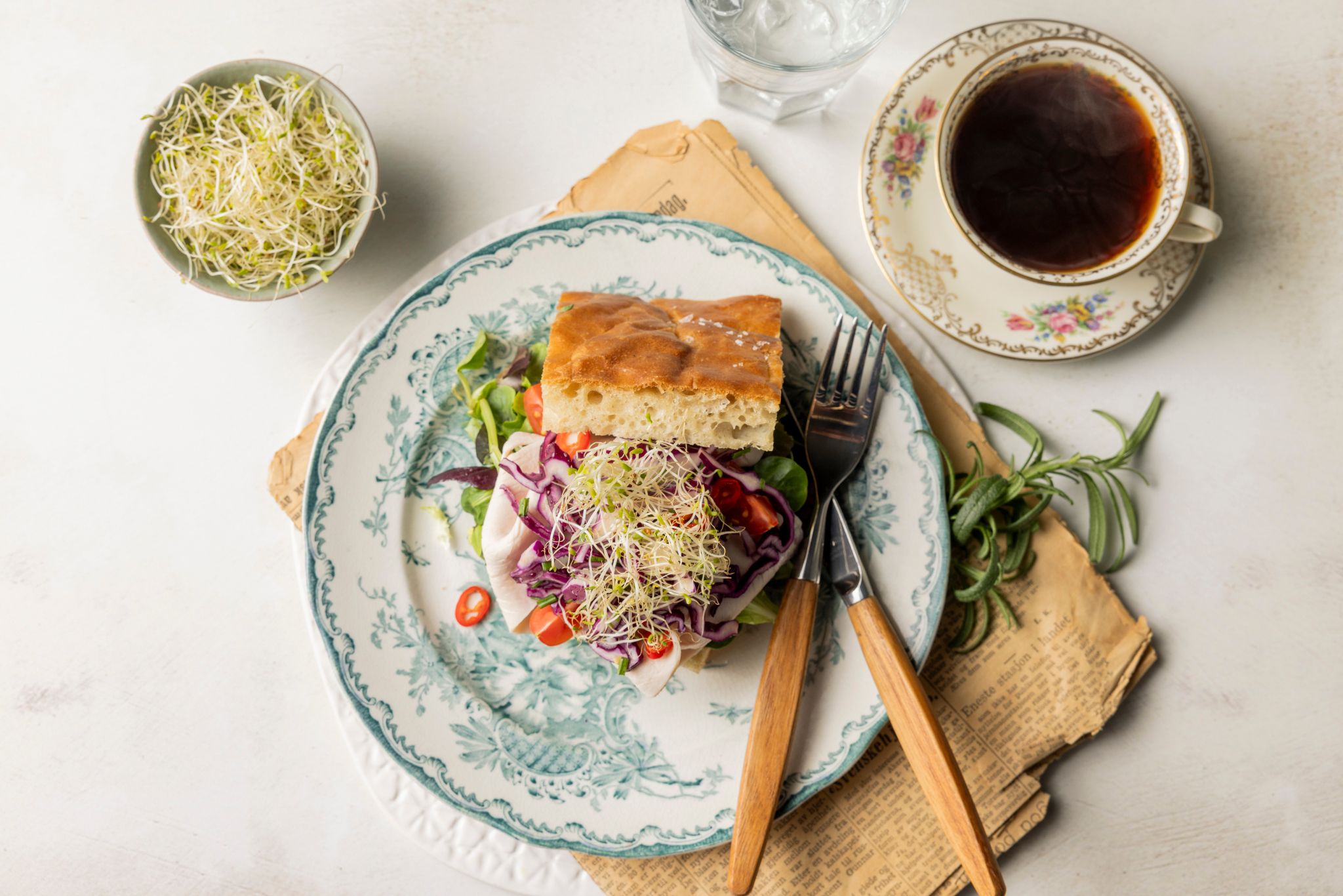 Hos oss serverer vi fersk brent kaffe & økolgisk te fra Den Gyldene Bønne i Bærum. Brødet vårt blir laget på korn fra Holli Mølle i Spydeberg, og produsert av Kolonihagen i Oslo.